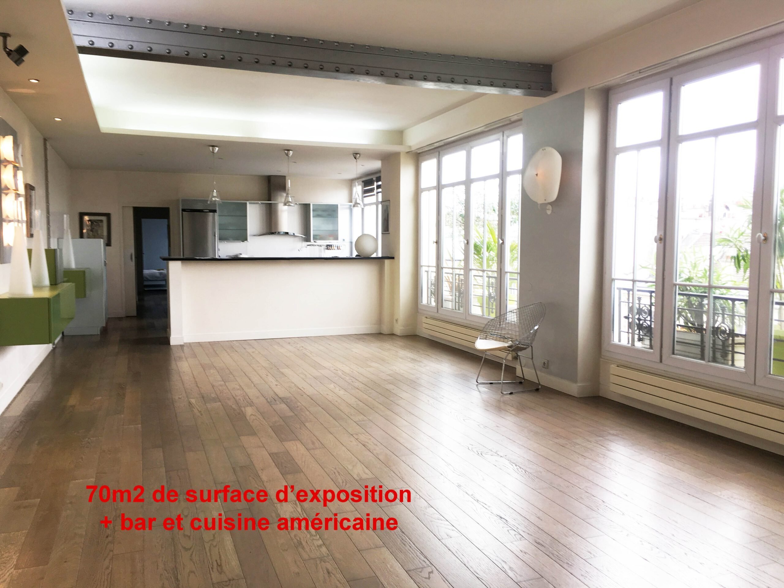 Piece principale d'un appartement d'environ 70m2 + bar et cuisine américaine